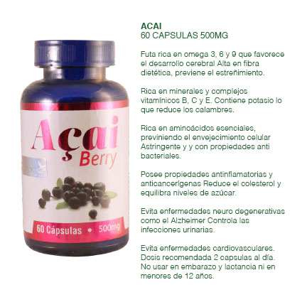 Amplia variedad de suplementos alimenticios, tales como el Goji, Mango Africano, Moringa, Maqui, Noni, Chía y otros.